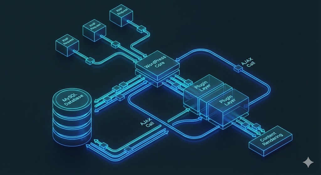 בניגוד לאתר סטטי, כל טעינת עמוד ב־WP מפעילה:
